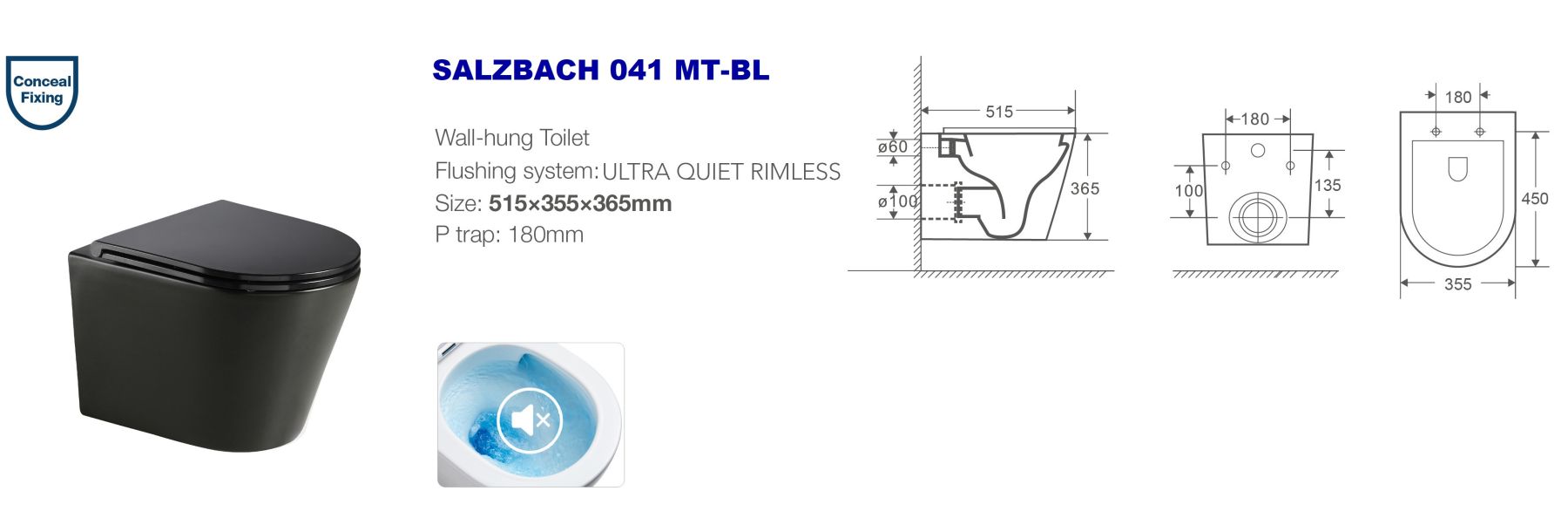Унитаз подвесной Weltwasser WW SALZBACH 041 MT-BL 10000008258 черныйУНИТАЗ ПОДВЕСНОЙ БЕЗОБОДКОВЫЙ RIMLESS* УЛЬТРА ТИХИЙ СЛИВ ВОДЫ* Технология слива TORNADO* Антивсплеск* Горизонтальный выпуск* Скрытые крепления* Сиденье: тонкое, быстросъёмное, дюропласт с микролифтом.* Антибактериальное покрытие (технология PureGuard) препятствует размножению бактерий* Особая глазурь для легкой очистки отталкивает известковые отложения и загрязнения* Цвет: черный матовый.