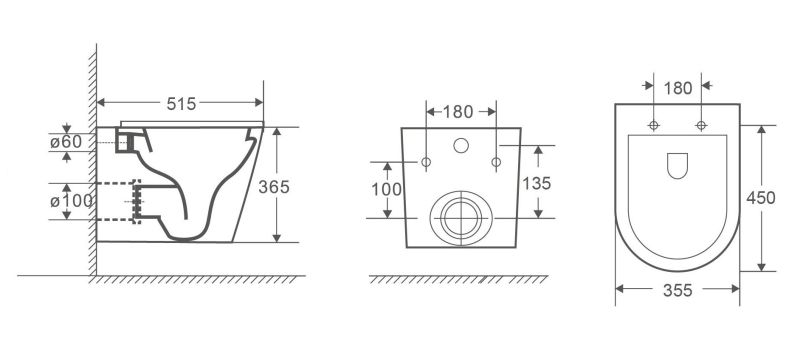 Прилегание унитаза к стене:вплотную