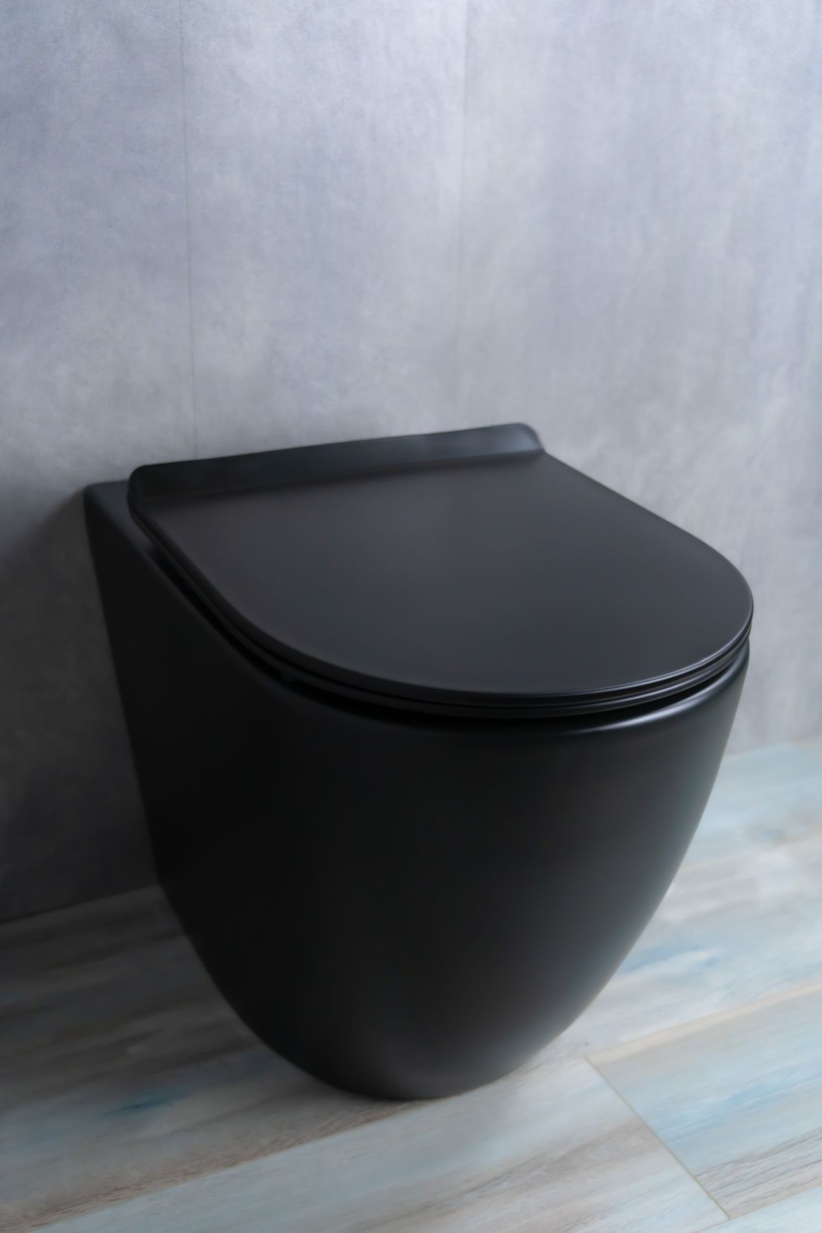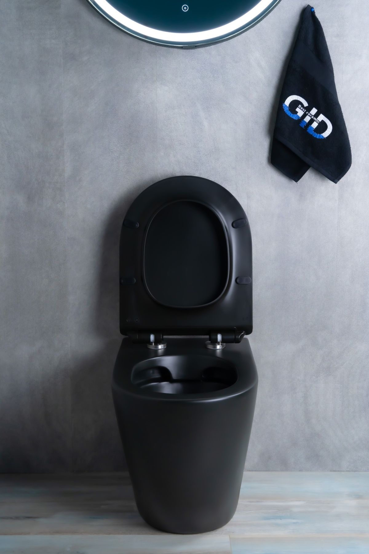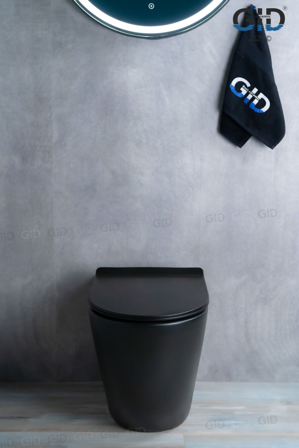 Convexo — коллекция округлых унитазов и биде, идеально подходящих для современных интерьеров. Испанское качество и соответствие европейским нормам — основные черты серии. Приставной безободковый унитаз GiD TRS-269BM — стильная напольная модель с горизонтальным выпуском предназначена для установки со скрытым бачком. Выполнен из высококачественной керамики в черном цвете с матовым покрытием, что обеспечивает долговечность и уникальный внешний вид. Крышка унитаза изготовлена из прочного дюропласта и оснащена функцией микролифта, которая обеспечивает плавное и бесшумное опускание. Благодаря антигрязевому покрытию и воронкообразной овальной чаше унитаз обеспечивает высокий уровень гигиены и легкость ухода.
