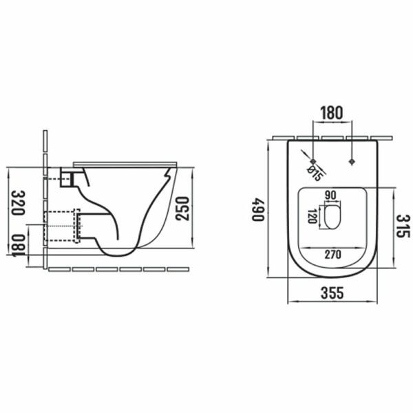 Прилегание унитаза к стене:вплотную