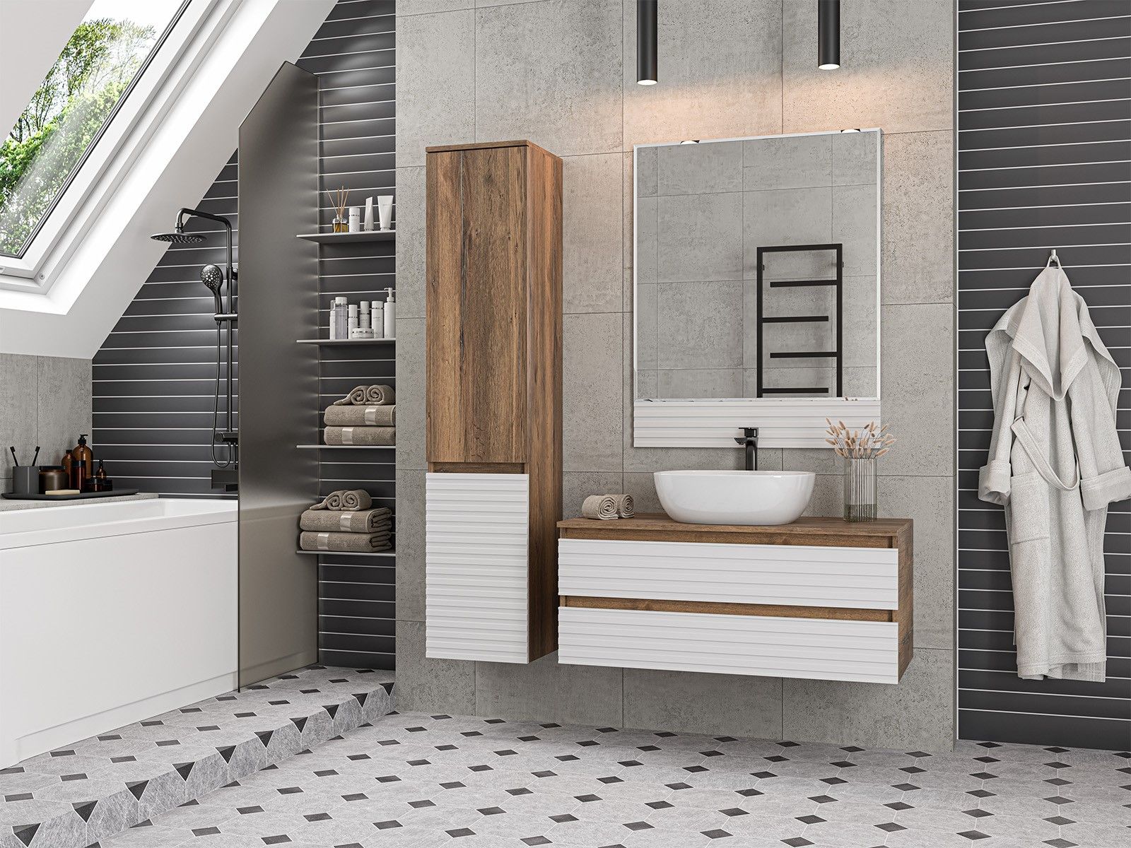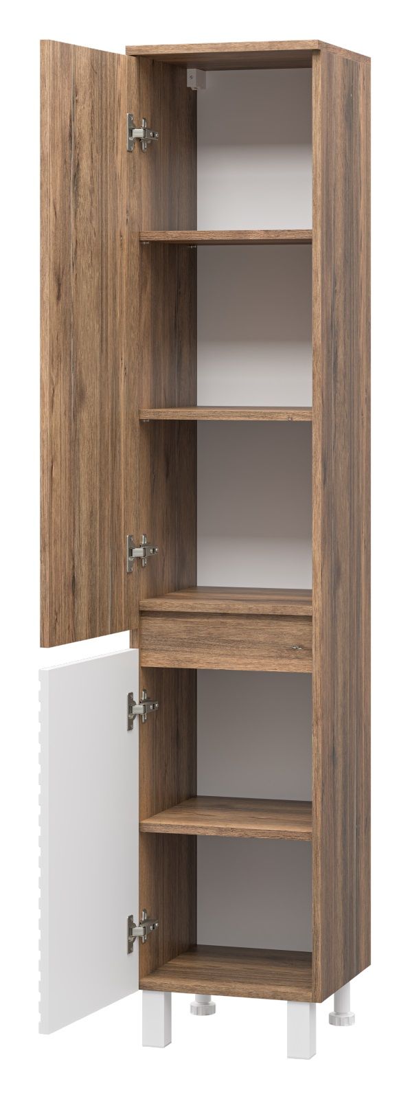 Шкаф-пенал для ванной комнаты – это стильное решение, которое гармонично вписывается в современный интерьер. Его элегантные линии и аккуратные формы создают атмосферу чистоты и порядка, что особенно важно в таком интимном пространстве. Изготовленный из качественных влагостойких материалов, этот шкаф обеспечивает долговечность и надежность, даже в условиях повышенной влажности.Основное преимущество шкаф-пенала заключается в его вместительности. Удобные полки и ящики позволяют организовать пространство и разместить все необходимое: от косметики до бытовых принадлежностей. Каждая деталь продумана для удобства использования, что делает утренние и вечерние ритуалы более приятными.Будь то строгий минимализм или уютный скандинавский стиль, шкаф-пенал станет акцентом, который подчеркивает индивидуальность вашего пространства. Не упустите возможность преобразить свою ванную комнату, добавив в нее этот элегантный и практичный элемент.