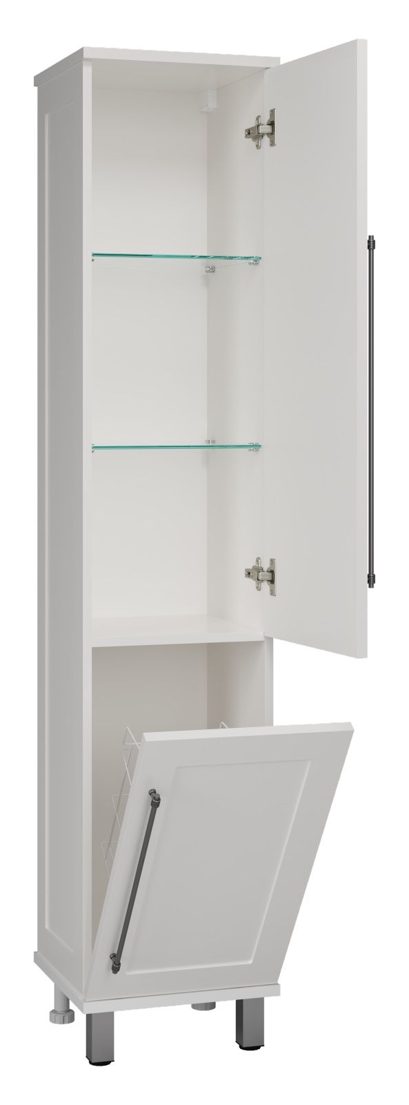 Универсальный шкаф - пенал Misty Марта 35см правый с бельевой корзиной белый