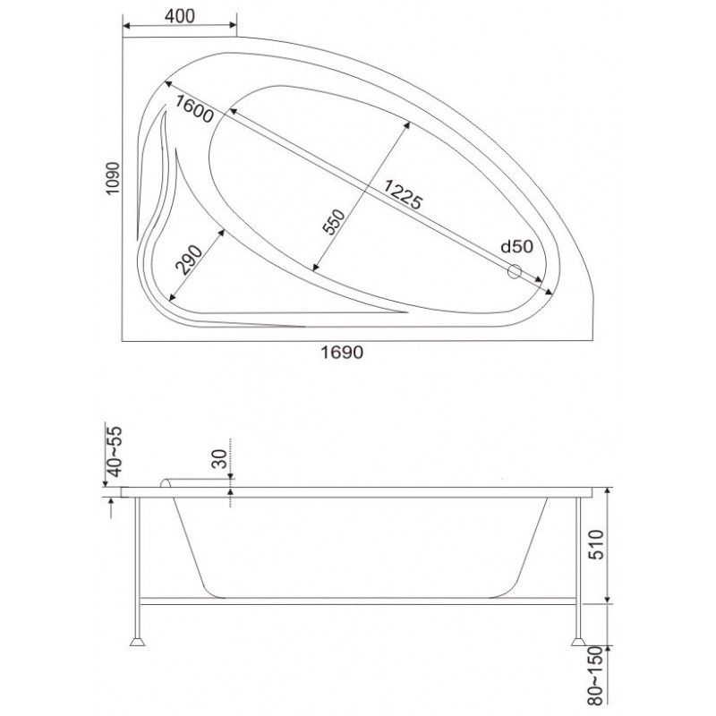 Ванна акриловая Bas Милан 170x110Качественная ванна Bas на усиленом каркасе