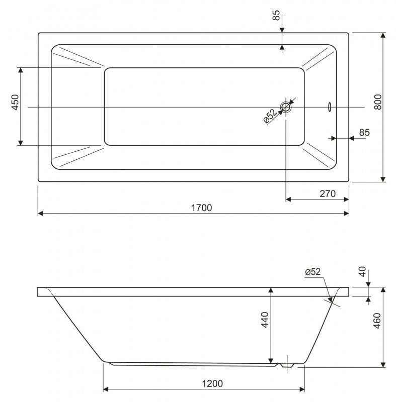 Ванна акриловая Cezares PLANE SOLO-170-80-49-W37
