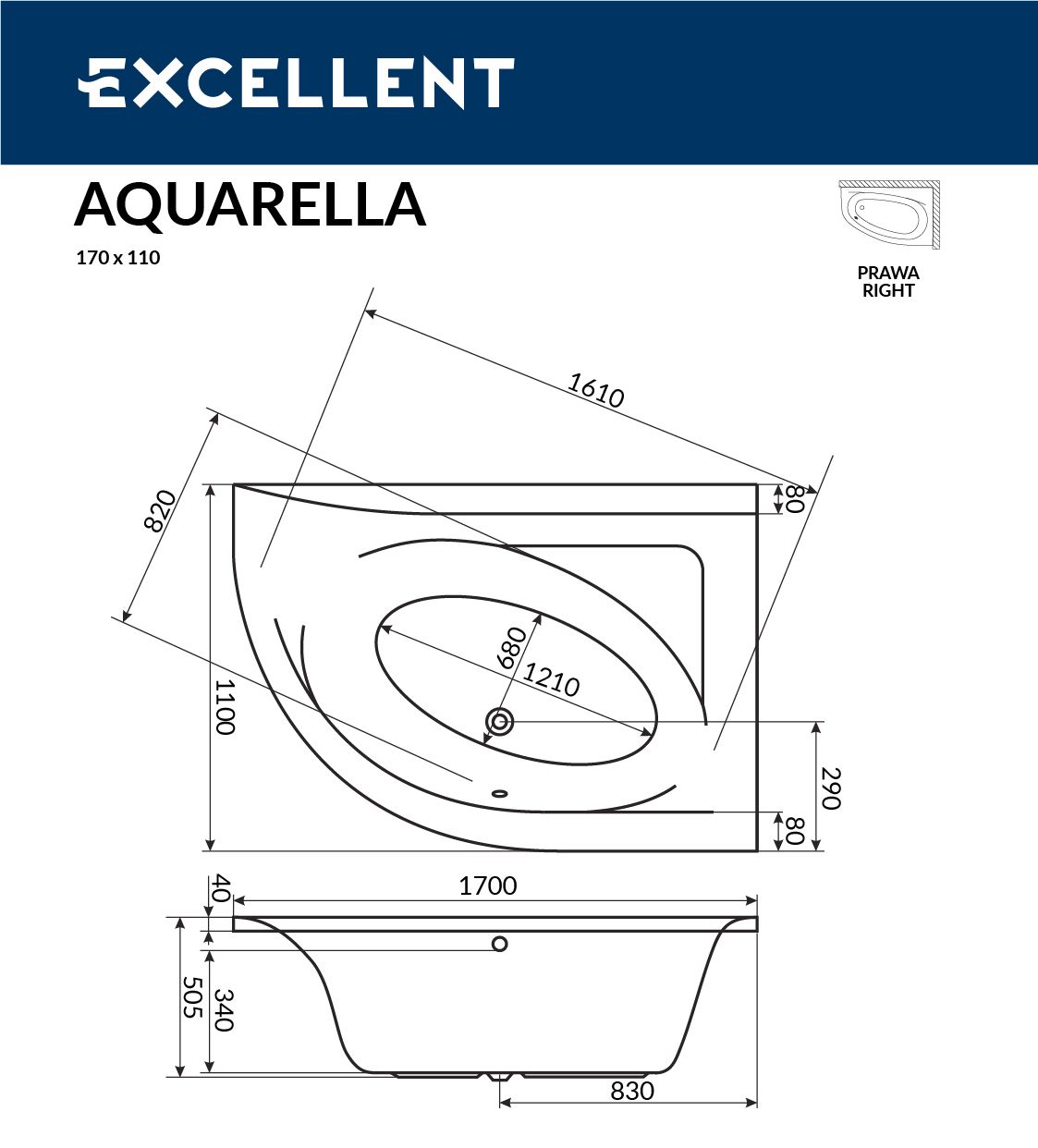 Ванна акриловая EXCELLENT Aquarella 170x110 (правая)