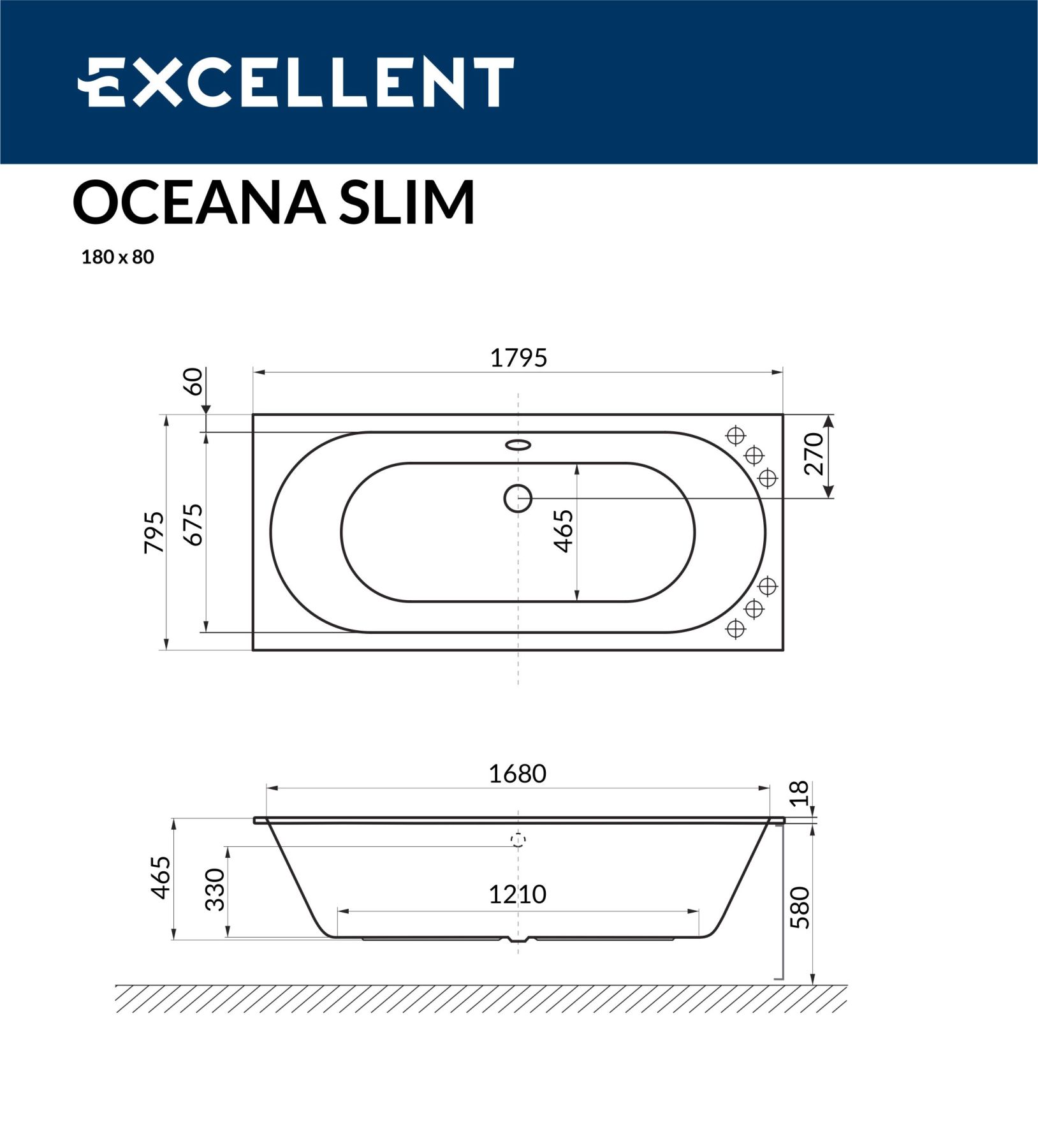 Ванна акриловая EXCELLENT Oceana Slim 180x80