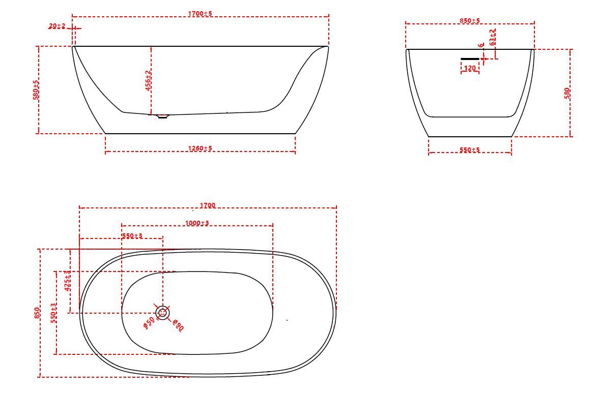 Ванна акриловая Vincea VBT-601-1700, цвет белый, щелевой перелив