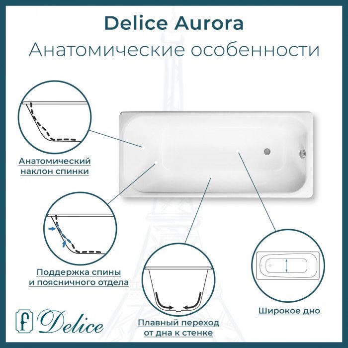 Чугунная ванна Delice - это отличный способ отвлечься от повседневных проблем и избавиться от стресса во время принятия водных процедур. Основным преимуществом ванны из чугуна является простота в уходе и устойчивость эмали ванны перед большинством механических повреждений.Прямоугольная форма ванны идеально подойдет к любому интерьерному решению. Пристенный монтаж - наиболее традиционный вид установки. Оптимальная глубина составляет 46,2 см, что позволяет принимать ванну с максимальным комфортом. Ванна Delice выполнена со строгим соблюдением всех актуальных элементов современного стиля. Ванны Delice производятся с исключительными стандартами качества, по сертифицированным технологиям, с использованием надежных безвредных материалов. Чугунна ванна Delice сделает любое дизайнерское решение не только практичным в плане использования, но и стильным с точки зрения эстетики.