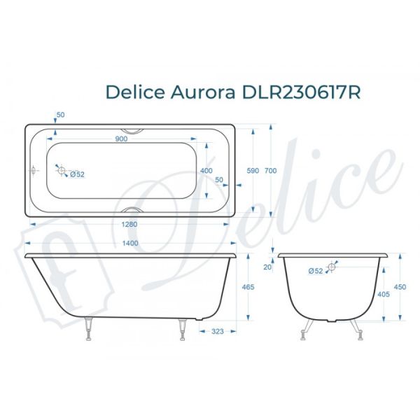 Ванна чугунная Delice Aurora DLR230617R 140х70 с отверстиями под ручки купить