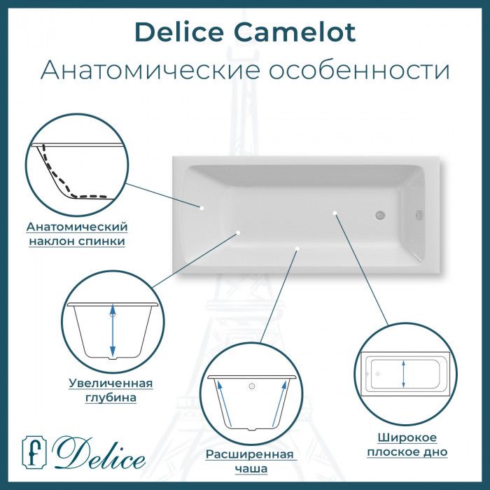 Чугунная ванна Delice - это отличный способ отвлечься от повседневных проблем и избавиться от стресса во время принятия водных процедур. Основным преимуществом ванны из чугуна является простота в уходе и устойчивость эмали ванны перед большинством механических повреждений.Прямоугольная форма ванны идеально подойдет к любому интерьерному решению. Пристенный монтаж - наиболее традиционный вид установки. Оптимальная глубина составляет 46,2 см, что позволяет принимать ванну с максимальным комфортом. Ванна Delice выполнена со строгим соблюдением всех актуальных элементов современного стиля. Ванны Delice производятся с исключительными стандартами качества, по сертифицированным технологиям, с использованием надежных безвредных материалов. Чугунна ванна Delice сделает любое дизайнерское решение не только практичным в плане использования, но и стильным с точки зрения эстетики.