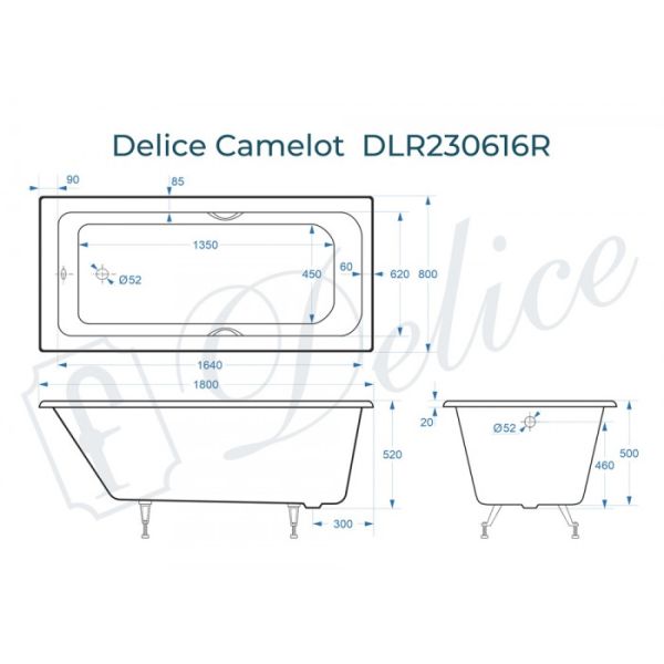 Ванна чугунная Delice Camelot DLR230616R-AS 180х80 сс отверстиями под ручки и антискользящим покрытием купить