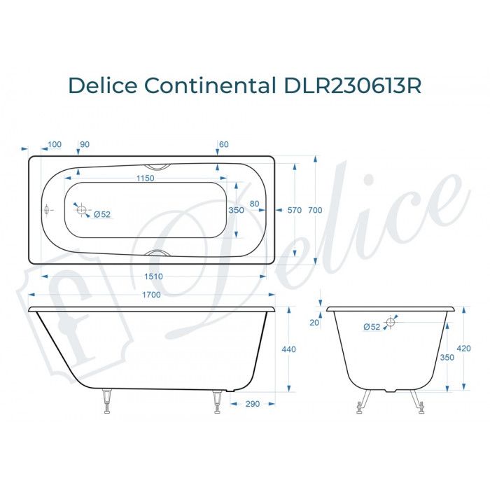 Ванна чугунная Delice Continental DLR230613R 170x70 с отверстиями под ручки