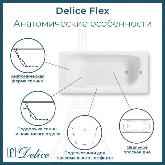 Ванна чугунная Delice Flex DLR230632R 180х85 с отверстиями под ручки купить