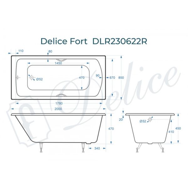 Ванна чугунная Delice Fort DLR230622R 200х85 с отверстиями под ручки купить