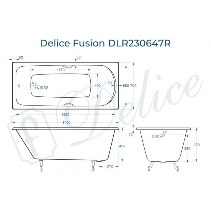 Ванна чугунная Delice Fusion DLR230647R 170х70 с отверстиями под ручки купить