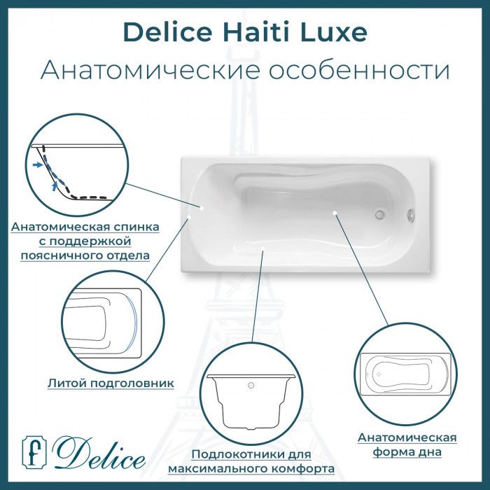 Ванна чугунная Delice Haiti Luxe DLR230638 170х80 белая купить