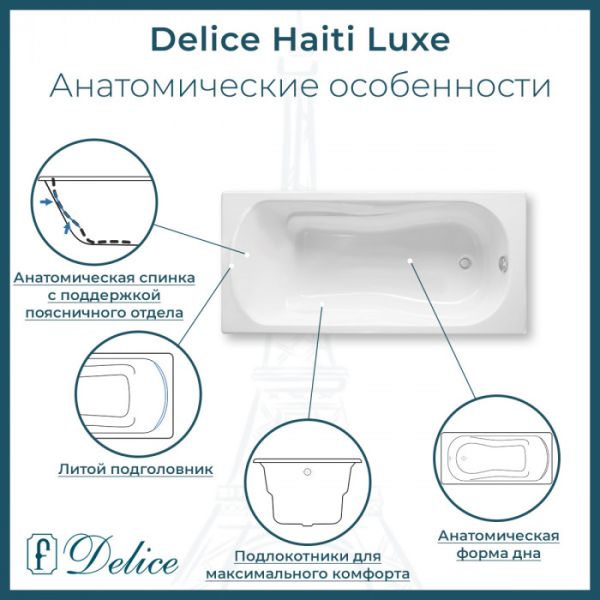 Ванна чугунная Delice Haiti Luxe DLR230639-AS 180х80 с антискользящим покрытием купить