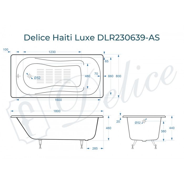 Ванна чугунная Delice Haiti Luxe DLR230639-AS 180х80 с антискользящим покрытием