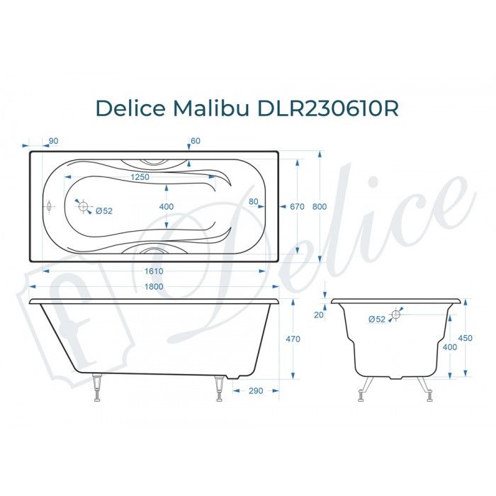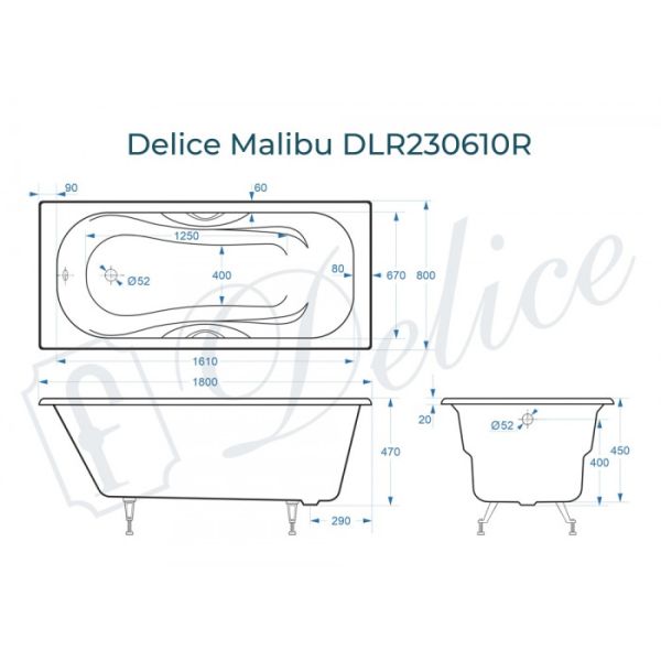 Ванна чугунная Delice Malibu DLR230610R 180x80 с отверстиями под ручки купить