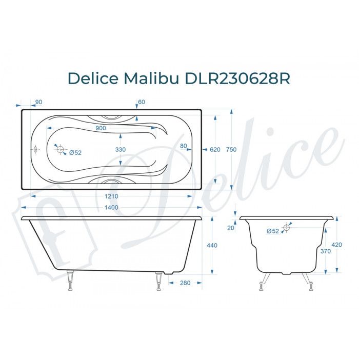 Ванна чугунная Delice Malibu DLR230628R 140х75 с отверстиями под ручки
