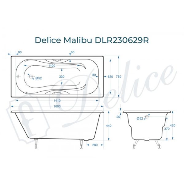 Ванна чугунная Delice Malibu DLR230629R 160х75 с отверстиями под ручки купить