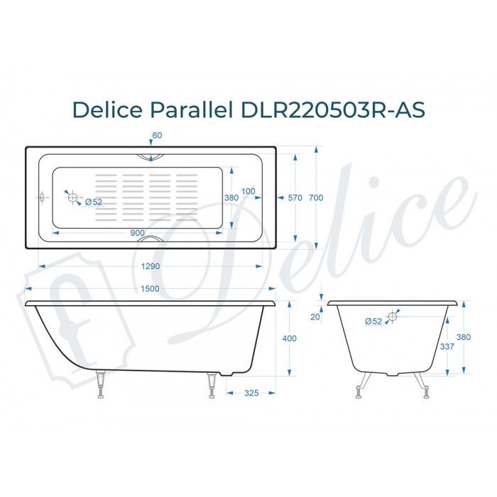 Ванна чугунная Delice Parallel DLR220503R-AS 150x70 с ручками купить