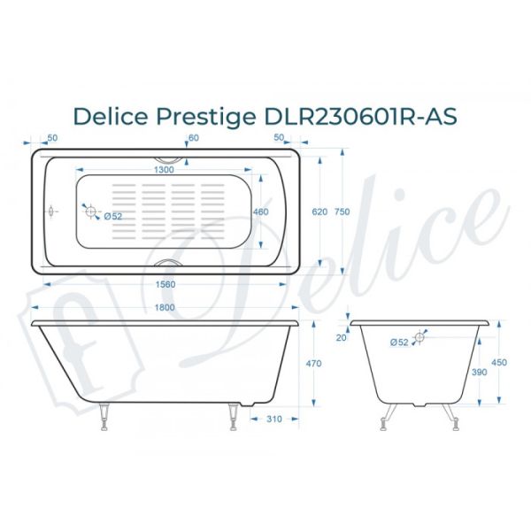 Ванна чугунная Delice Prestige DLR230601R-AS 180х75 с отверстиями под ручки и антискользящим покрытием купить