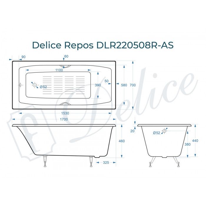 Ванна чугунная Delice Repos DLR220508R-AS 170x70 с ручками
