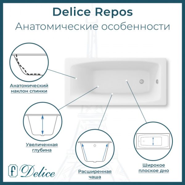 Чугунная ванна Delice - это отличный способ отвлечься от повседневных проблем и избавиться от стресса во время принятия водных процедур. Основным преимуществом ванны из чугуна является простота в уходе и устойчивость эмали ванны перед большинством механических повреждений.Прямоугольная форма ванны идеально подойдет к любому интерьерному решению. Пристенный монтаж - наиболее традиционный вид установки. Оптимальная глубина составляет 46,2 см, что позволяет принимать ванну с максимальным комфортом. Ванна Delice выполнена со строгим соблюдением всех актуальных элементов современного стиля. Ванны Delice производятся с исключительными стандартами качества, по сертифицированным технологиям, с использованием надежных безвредных материалов. Чугунна ванна Delice сделает любое дизайнерское решение не только практичным в плане использования, но и стильным с точки зрения эстетики.