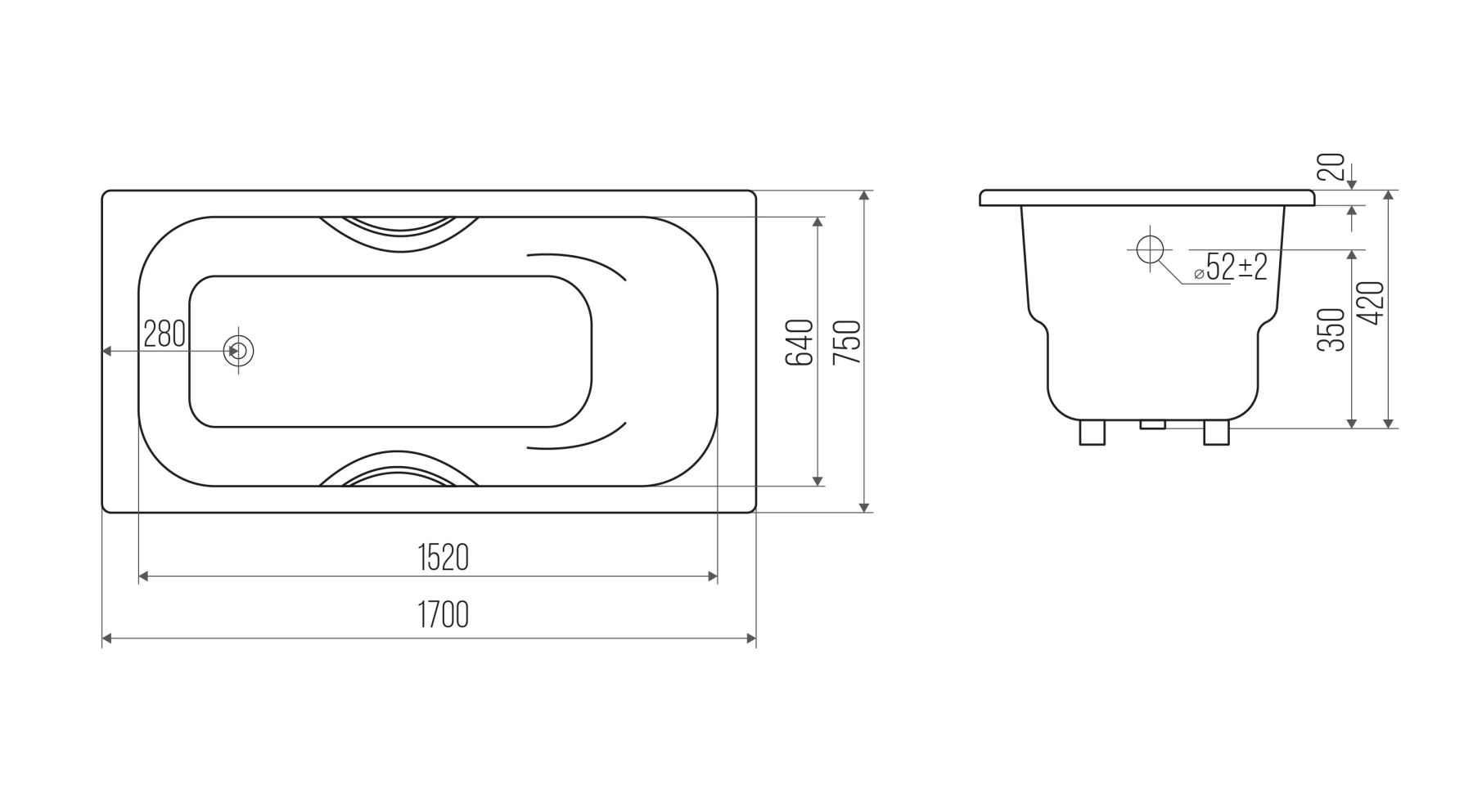 Ванна чугунная Goldman Donni DN17075 170x75см с ножками