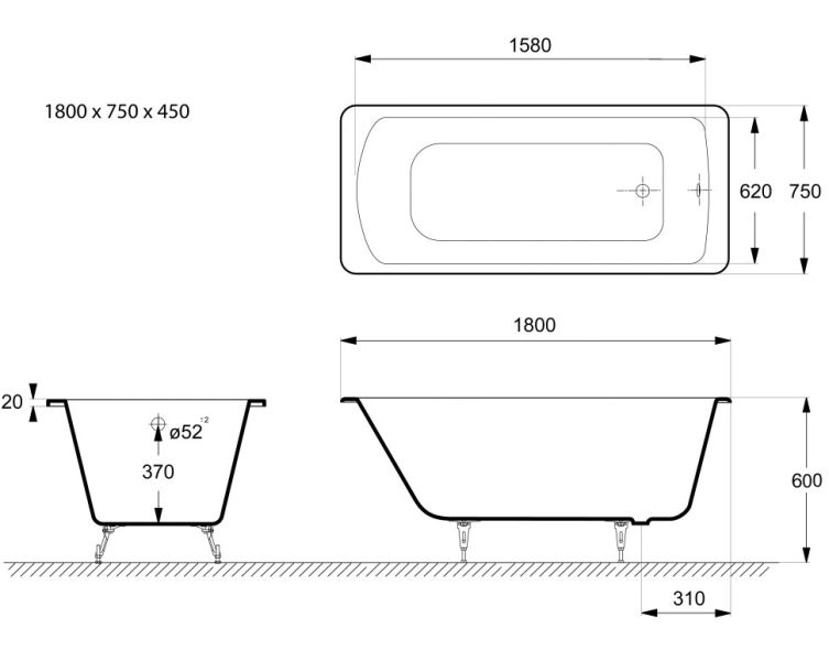 Общие характеристикиРазмер 180х75 Длина 180 см Ширина 75 см Глубина 45 см Высота на ножках 60 см Полезный объём 282 л Вес 137 кг Бренд Vinsent Veron 7 слёв титановой эмали класса 1А Цвет эмали белый Без антискользящего покрытия Диаметр слива Ø52 Расположение перелива стандартное
