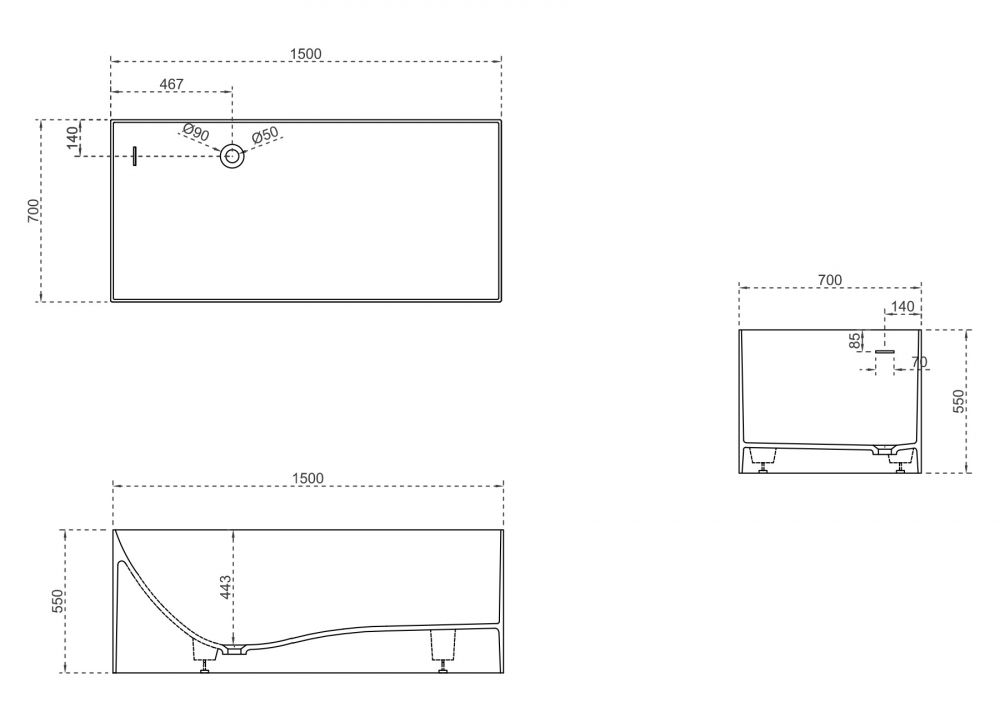 Ванна из искусственного камня ABBER Stein AS9640-1.5 150x70см белый матовый