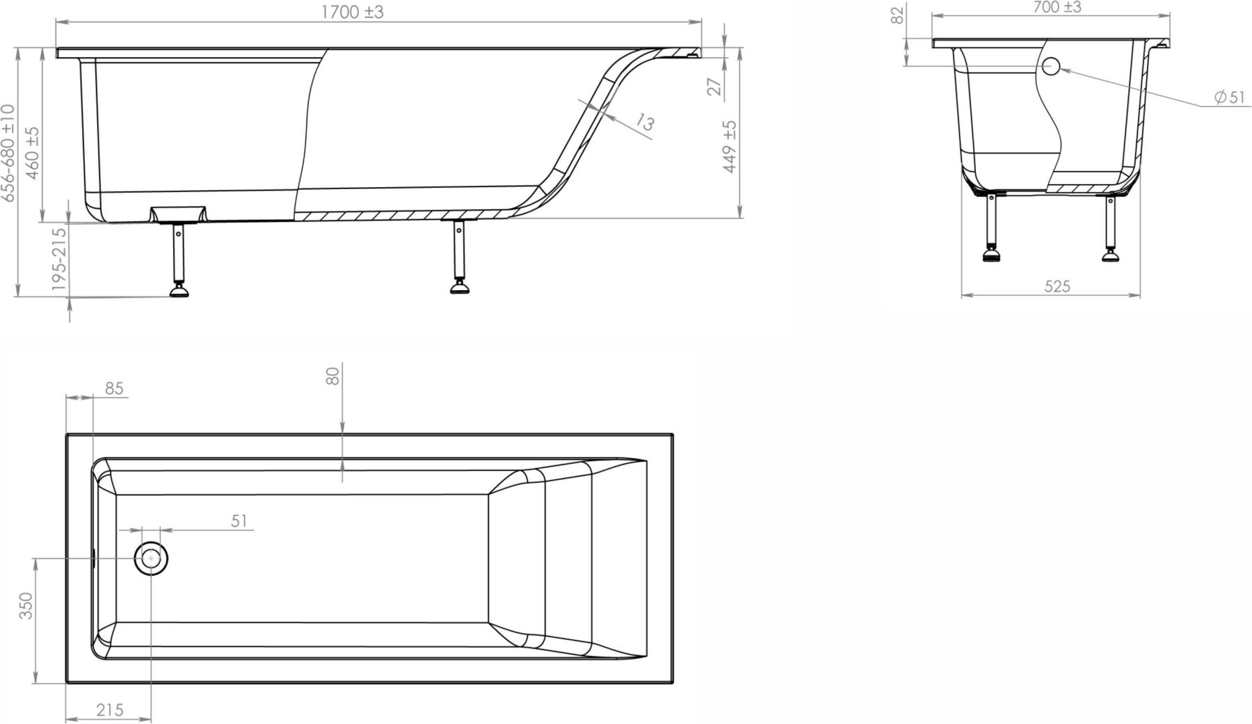 • Габариты (дшг): 170x70x46 см