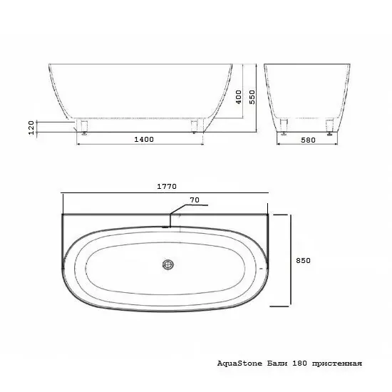 Ванна из искусственного камня AquaStone Бали 177x85см белый