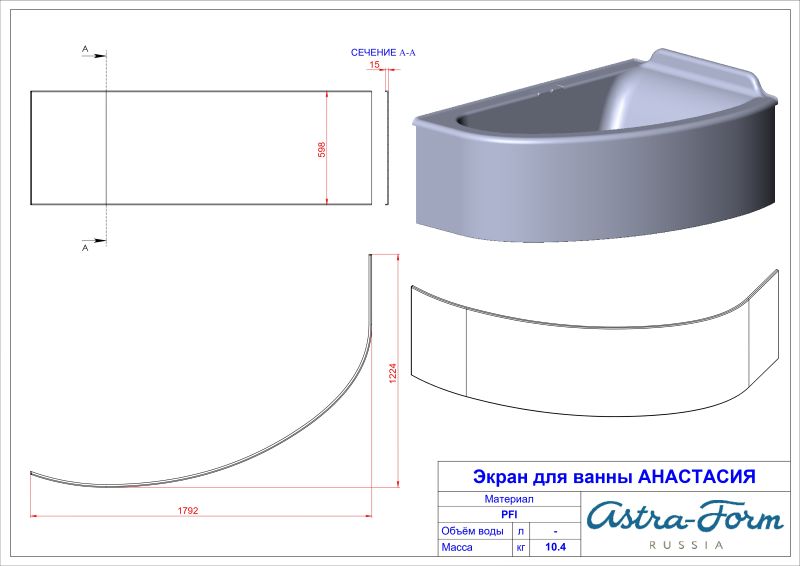 Ванна из искусственного камня Astra-Form Анастасия 01010064 правая 182x125 см белый матовый