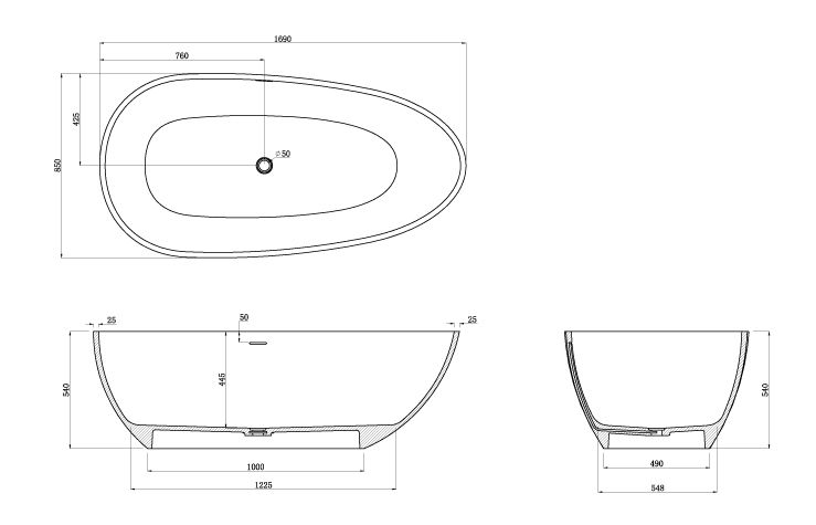 Ванна из искусственного камня Azario CLOVIS CLO17085S 1690х850х540 свободностоящая