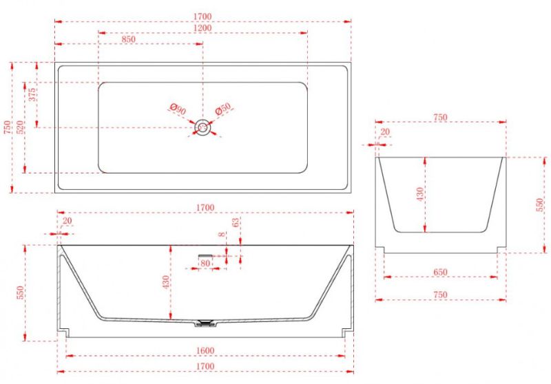 Ванна из искусственного камня NT Bagno Lieto NT222 170x75см белый матовый