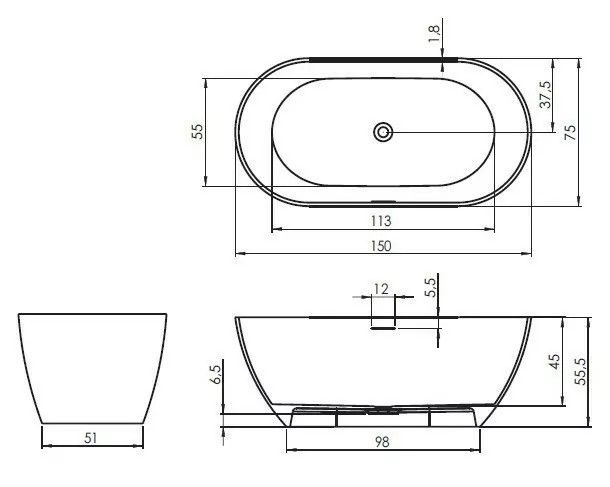 Ванна Solid Surface RIHO Bilbao 150х75 - композитная ванна, изготовленная из однородной каменной массы - каменная на ощупь, тёплая внутри. Это имитация мрамора: белый матовый цвет ванны при наполнении водой заиграет оригинальной текстурой камня.