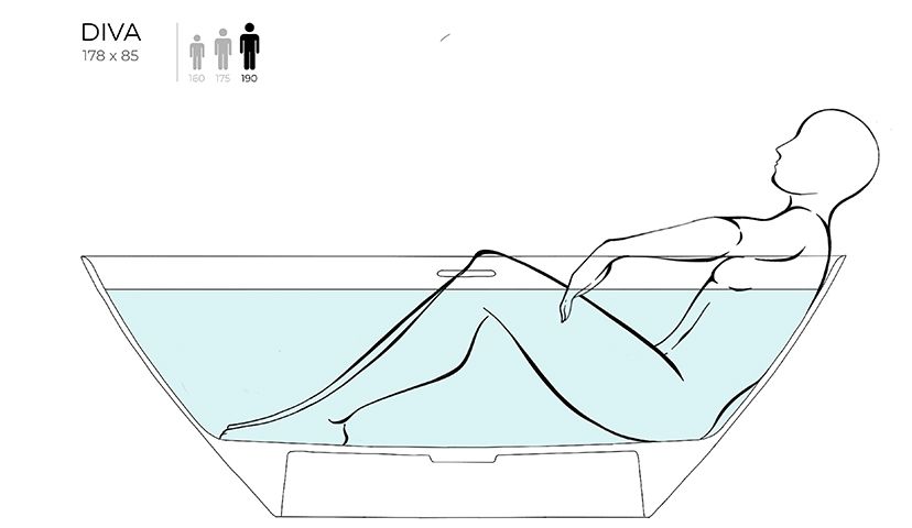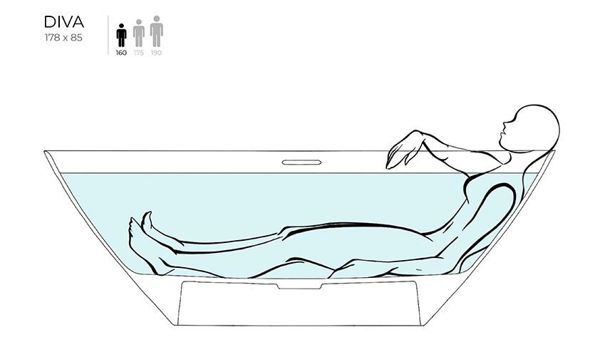Ванна из искусственного камня Salini Diva S-Sense 102211GRH 178x85см RAL снаружи