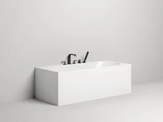 Овальная чаша и строгая геометрия экранов превращают модель FABIA в скульптуру, скромно занимающую место у стены ванной комнаты. Она притягивает взгляды. Внутри визуально цельного объёма скрывается купель с пологой спинкой, обещающей приватность и комфорт.