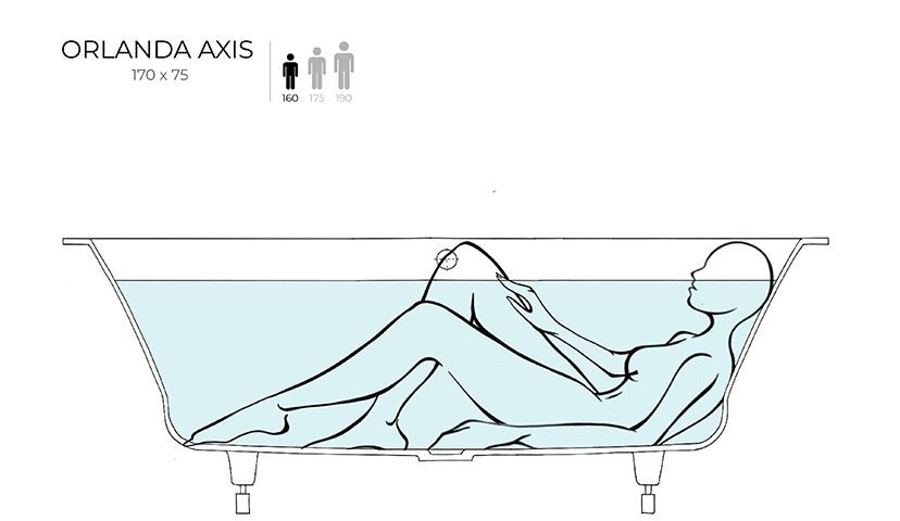 ORLANDA AXIS 170 — самая универсальная ванна Salini из литого камня.Она предназначена как для полного или частичного встраивания, так и для пристенной или угловой установки. Ванна характеризуется одинаковым уклоном бортов и расположенными посередине сливом-переливом и донным клапаном. Название модели Axis («Ось) отражает характерную симметрию ванны во фронтальной проекции.По индивидуальному запросу ванны из материала S-Sense могут быть оснащены любым количеством декоративных экранов для установки у стены или в углу. Экраны, изготовленные из того же материла, что и ванна, придают изделию законченный вид без видимых стыков и соединений.