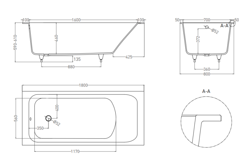 Ванна из искусственного камня Salini Orlanda S-Stone 102022MRH 180x80см RAL снаружи
