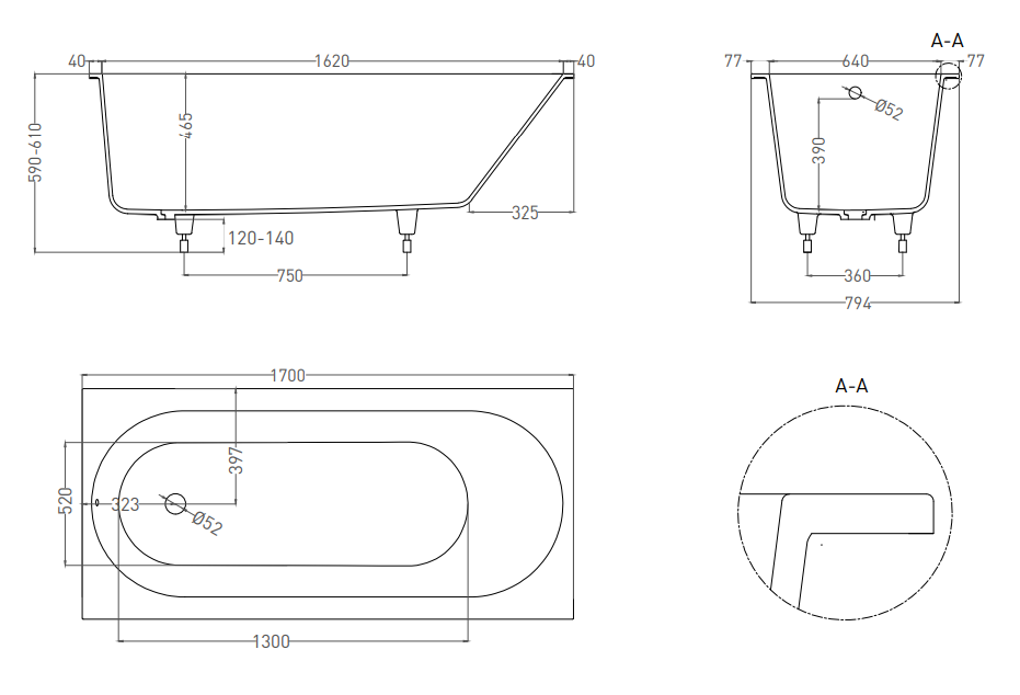 Стандартные размеры, см:170x80