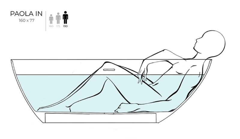 Ванна PAOLA IN — выбор настоящего гедониста. Нестандартный внешний вид ванны обусловлен её асимметрией — обе стороны достаточно разные, что позволяет расположиться как лёжа, так и сидя, при этом ощущая себя максимально комфортно.