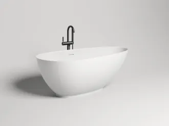 Необычный дизайн благоволит к смелым интерьерным решениям, особенно в сочетании с одноимённной раковиной-компаньоном, не только эффектной, но и практичной благодаря увеличенной глубине. Достаточно компактный размер ванны располагает просторным внутренним объёмом.