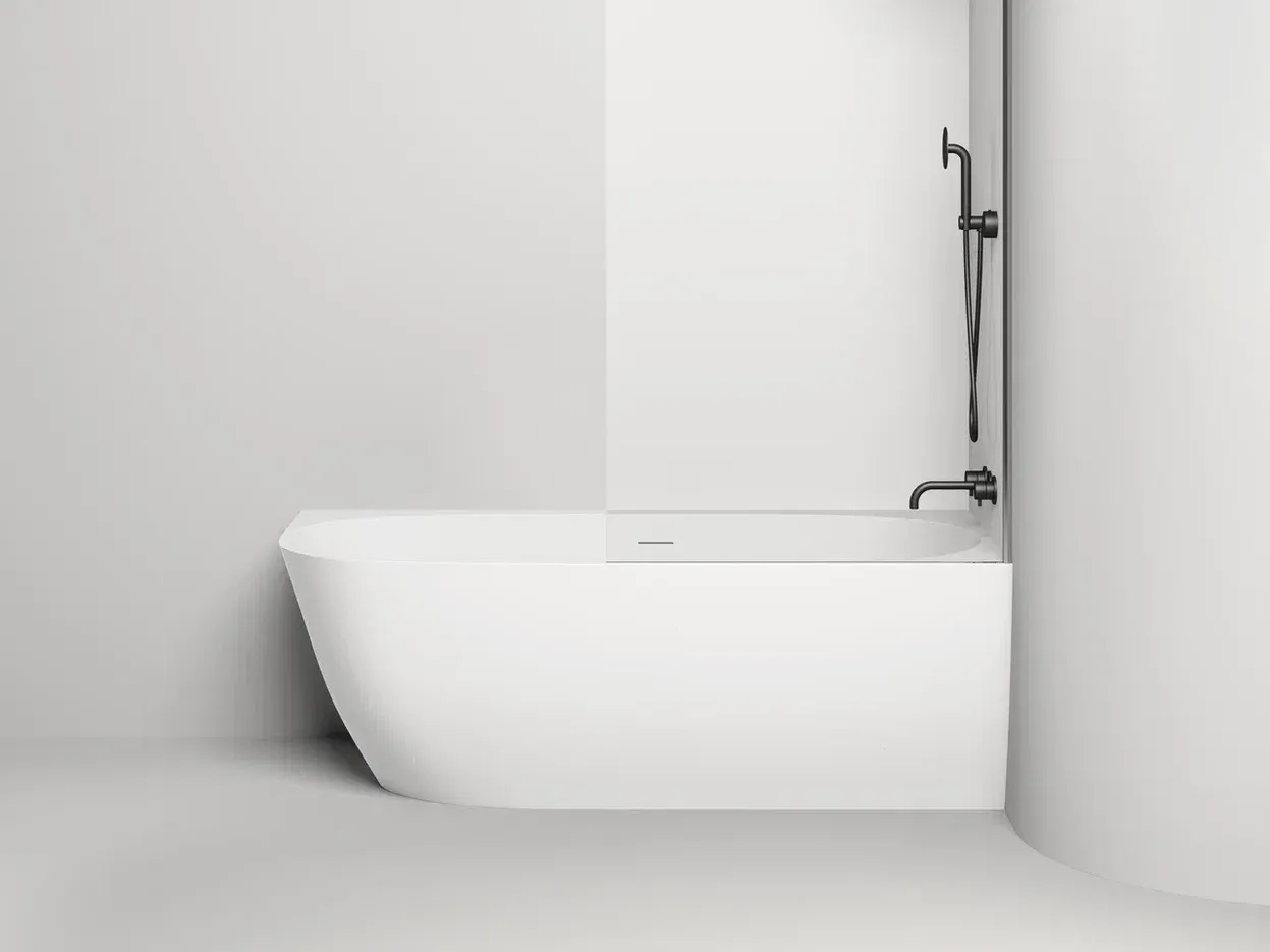 Ванна SOFIA CORNER R в материале S-Stone доступна к заказу только в светлых оттенках по палитре RAL Classic (возможно исполнение в графитовом чёрном цвете RAL 9011). Преимущества