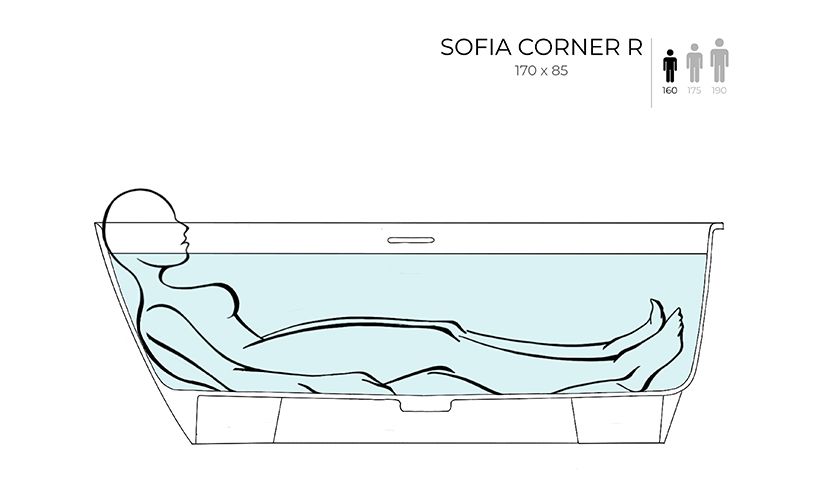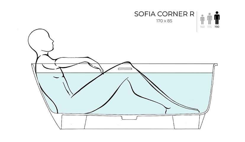 Угловая модификация популярной модели SOFIA оптимизирует пространство ванной комнаты. Купаться и принимать душ одновременно — нет ничего проще.