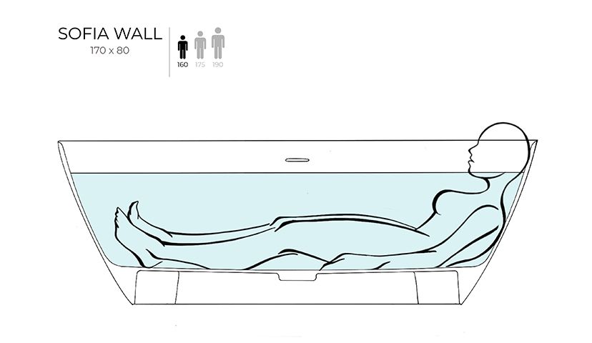 Пристенная ванна SOFIA WALL — практичное решение, когда не хочется терять ни сантиметра ценной площади ванной комнаты. Широкий бортик позволит расположить на нём необходимые туалетные принадлежности, а его ровное примыкание к стене упростит принятие душа.