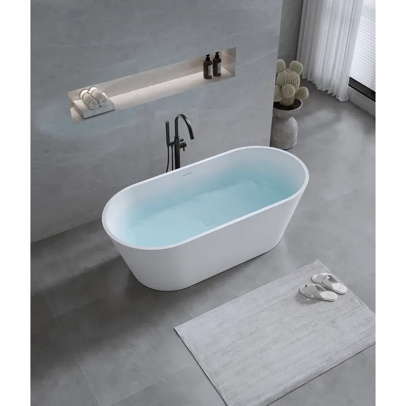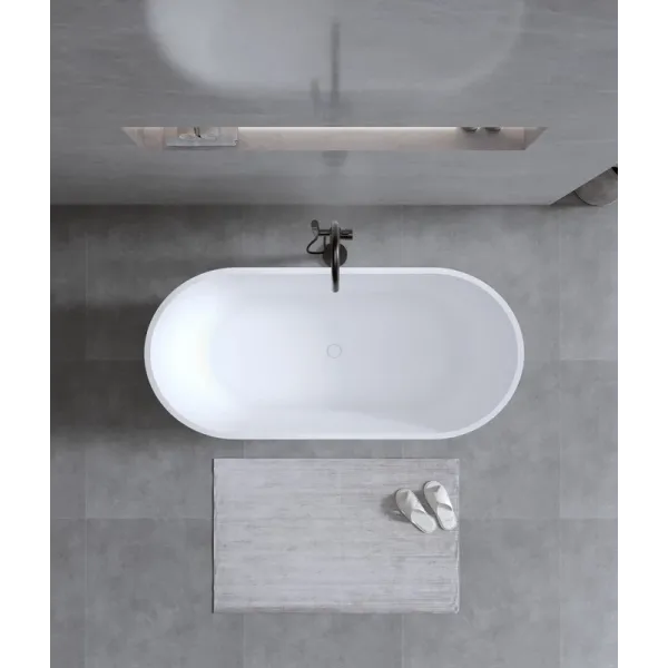 Поверхность ванны приятная на ощупь и не холодная благодаря низкому уровню теплопроводности, что делает процесс эксплуатации очень приятным.