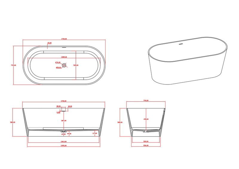 Поверхность ванны приятная на ощупь и не холодная благодаря низкому уровню теплопроводности, что делает процесс эксплуатации очень приятным.
